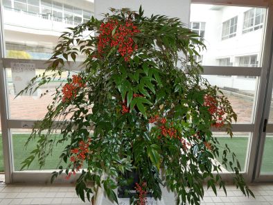 | 「難を転じる」ということで縁起が良いとされています。常緑低木で寒い花が少ない時期に、鮮やかな緑の葉と赤い実が目を引きます。お正月に飾る家庭も多いのではないでしょうか。 |
