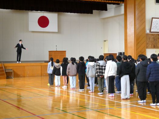 本日、令和7年度修了式が行われました。たくさんの経験をして成長した1年間をみんなで振り返ることができました。また、ひとつ上の学年に上がることへの心構えもできたと思います。それぞれの学年の代表が修了証を受け取りました。また、式後には、人権担当の先生から、ちくちく言葉・ふわふわ言葉の振り返り、生活担当の先生から、春休みの過ごし方、自転車の乗り方の話がありました。