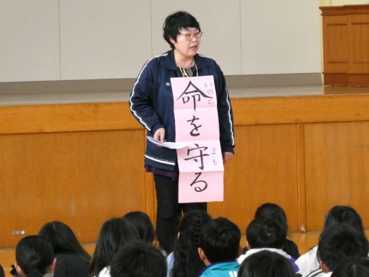 | 今年度はじめての絵本の読み聞かせが行われました。今日は1,2年生。朝一番の時間に、心温まる絵本を読んでいただき、ほっこりした気持ちになりました。子ども達は目を輝かせて聞いていました。3枚目の写真の上段3冊が1年生に読んだ本、下の2冊が2年生に読んだ本です。ご家庭でもぜひ話題にしてみてください。 |